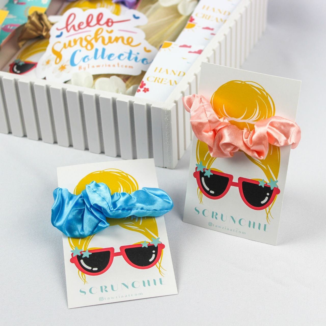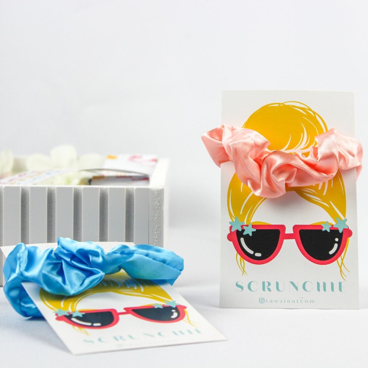 ربطات شعر من الستان بألوان صيفية منعشة في تغليف ورقي بتصميم جميل لربطات الشعر