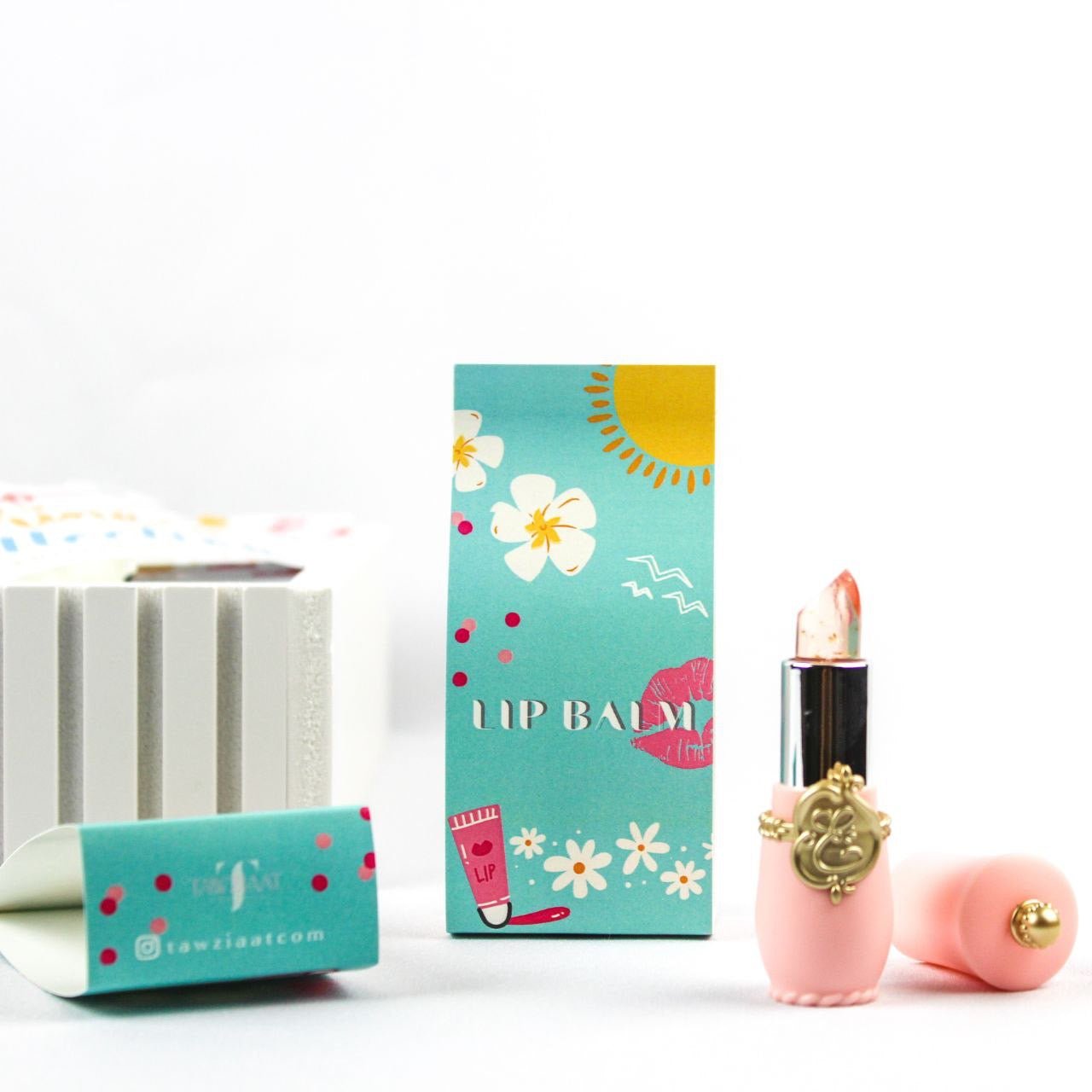 بلسم الورد الشهير ، ينعم الشفاه ويعطيها لون وردي ناعم، يحتوي على قطع من الورد المجفف. يأتي في تغليف ورقي مميز