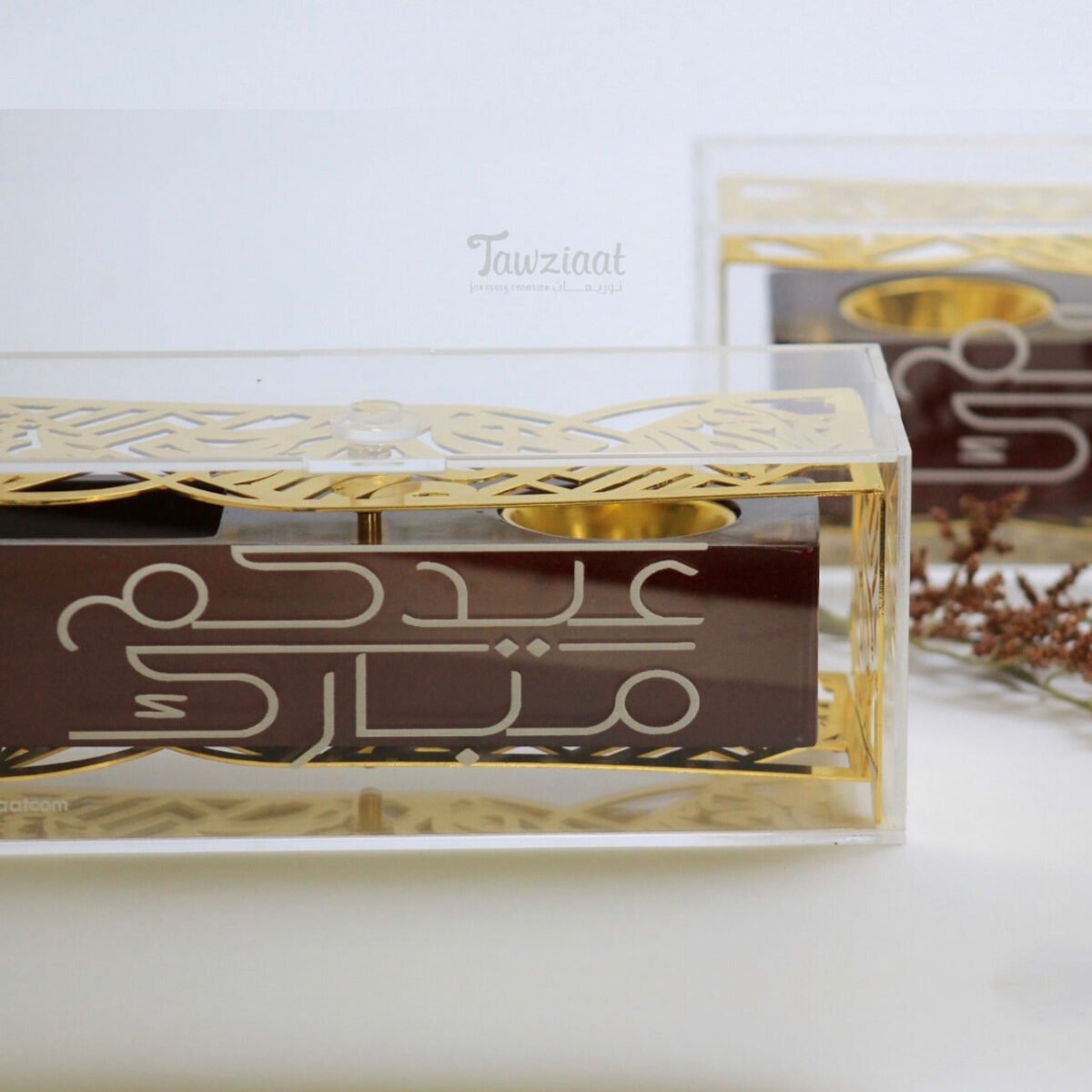 داخل بوكس من الاكريلك الشفاف بعبارة عيدكم مبارك